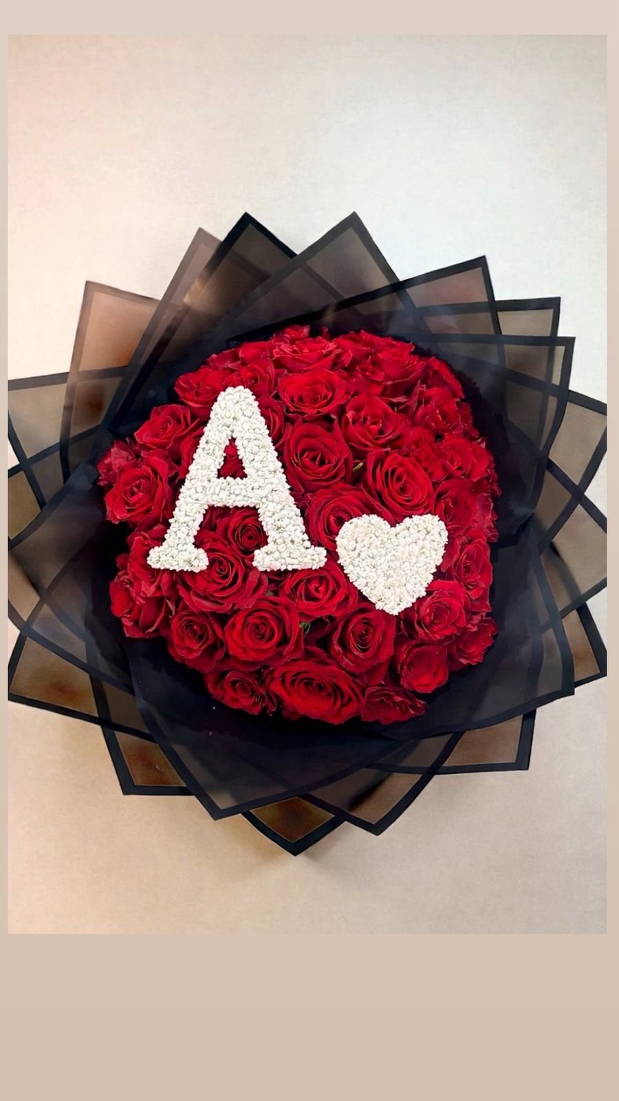 Make your gift truly unforgettable with this luxurious bouquet of fresh red roses, beautifully wrapped in elegant black layers and personalised with a floral initial and heart detail. Designed to express deep love and devotion, this arrangement is perfect for anniversaries, birthdays, proposals, Valentine’s Day, or any moment worth celebrating in a special way.