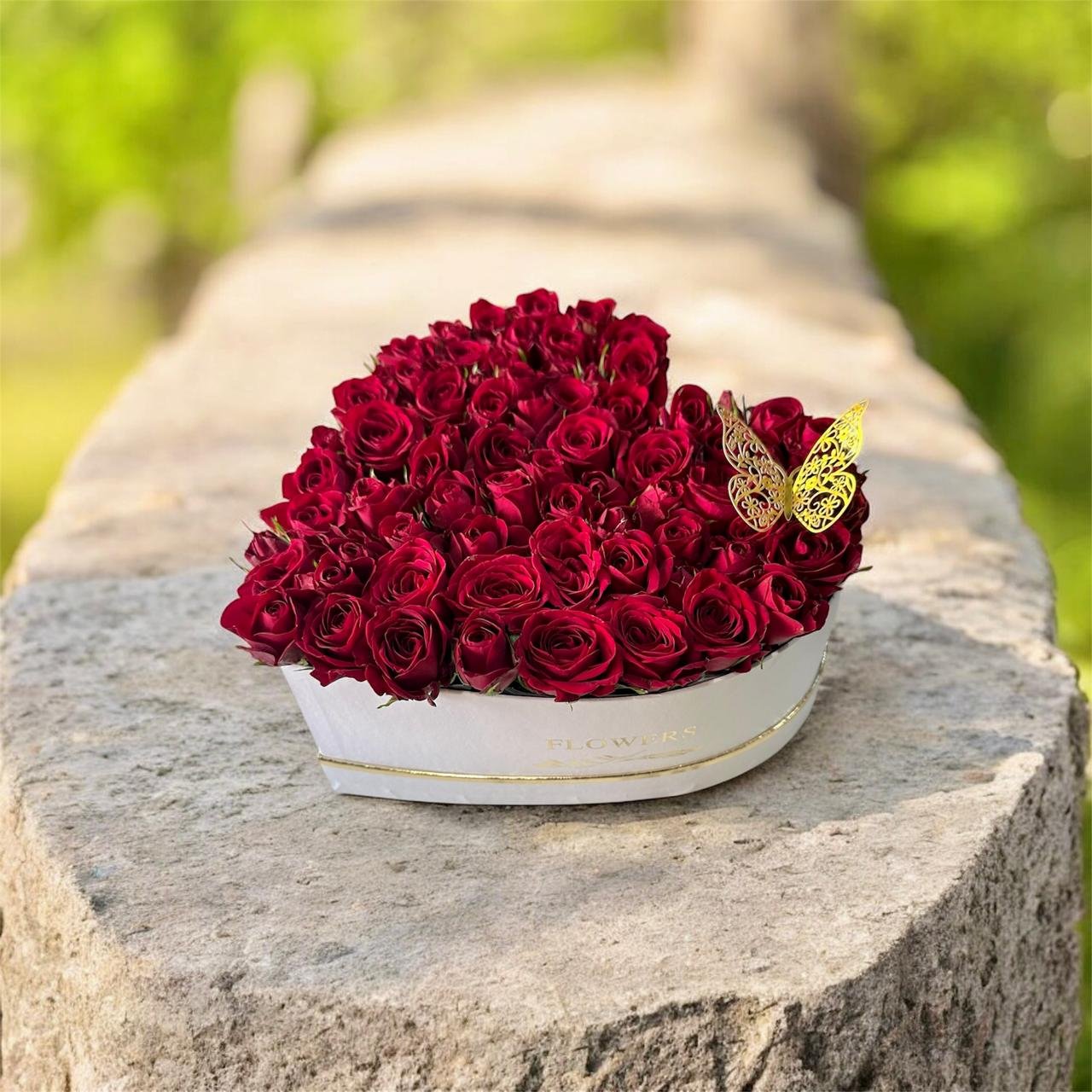 Express your deepest emotions with this stunning heart-shaped arrangement of fresh red roses. Expertly hand-crafted and beautifully presented in an elegant box, this design symbolizes love, passion, and romance. Perfect for anniversaries, Valentine’s Day, proposals, or any special occasion.