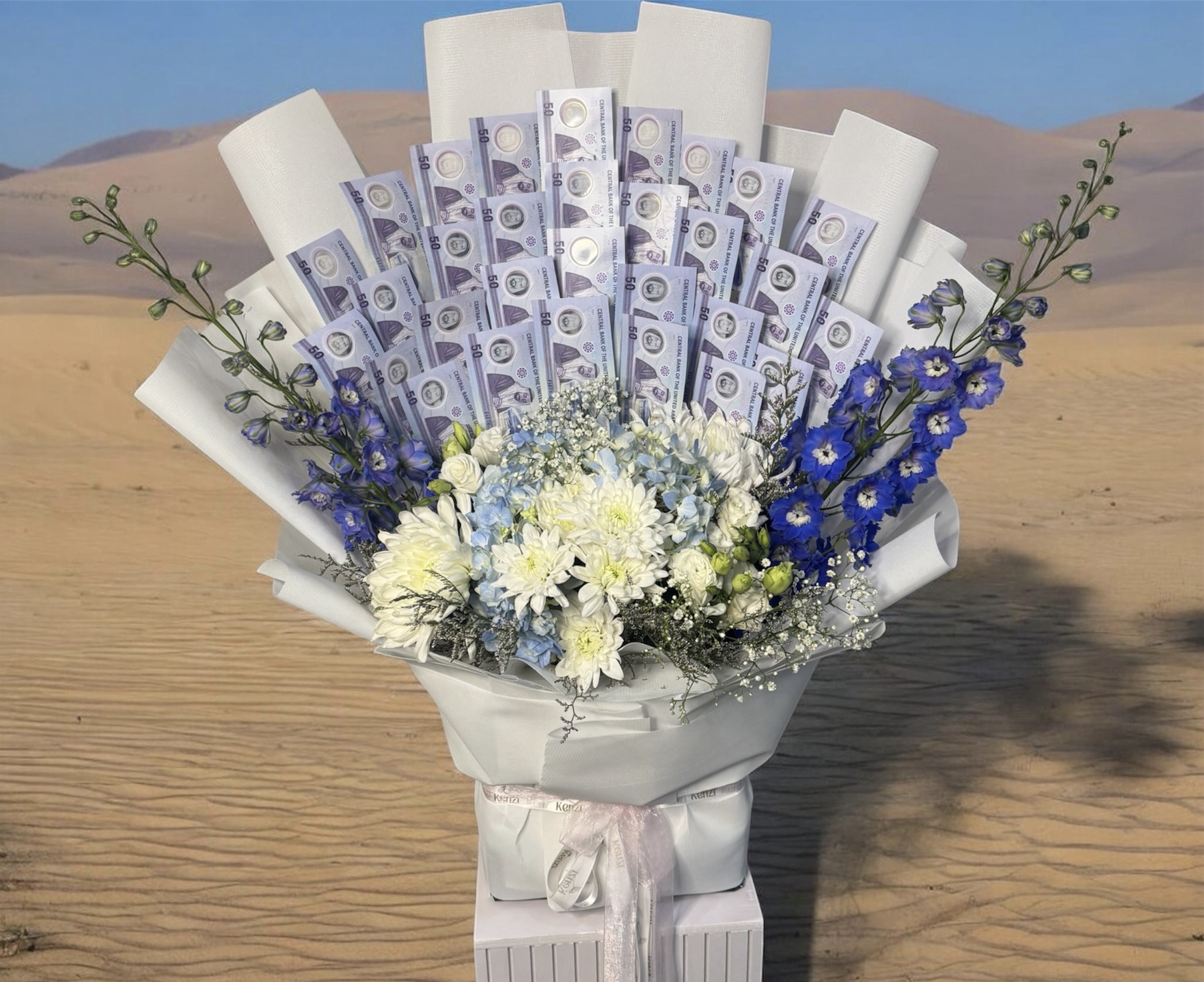 A perfect choice for anyone searching for a money bouquet in Dubai, cash gift bouquet, or a luxury flower arrangement with money.