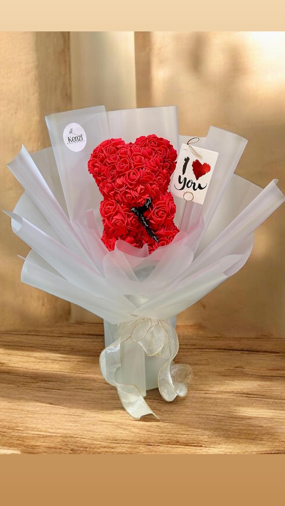 This elegant rose teddy bear bouquet from Kenzi is a unique and romantic gift, beautifully wrapped in a bouquet-style presentation. Made from delicate rose-shaped foam flowers, this teddy bear is designed to last and makes a perfect keepsake for someone special.