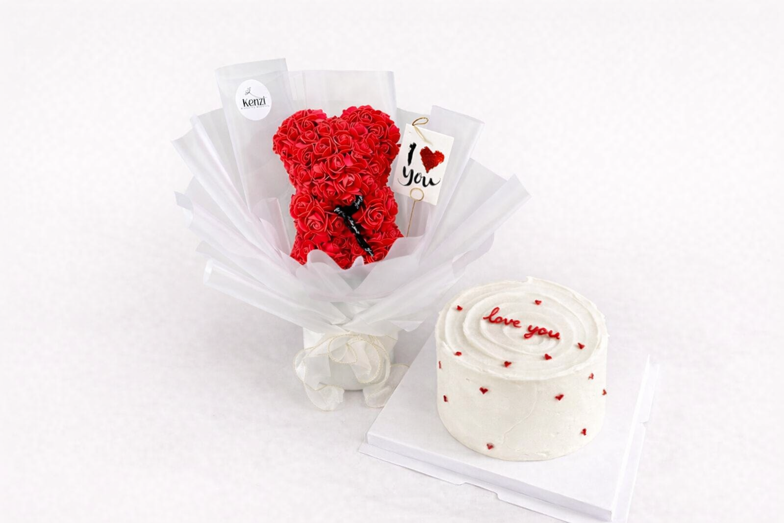 Valentine’s Gift Set – Rose Teddy & Love Cake